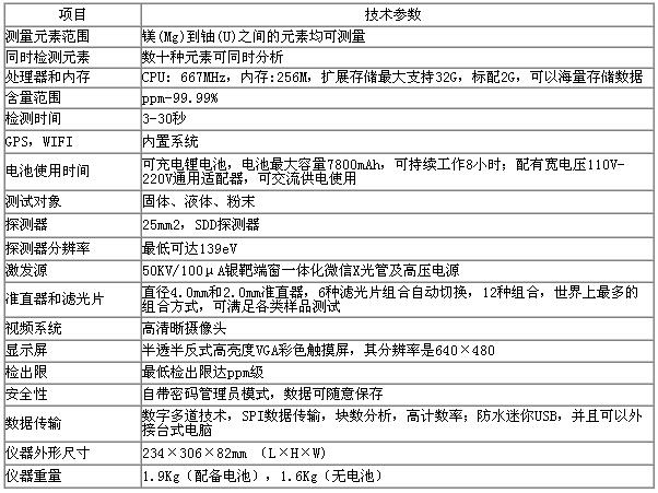 以下列出了大气重金属在线分析仪的一些重要技术参数(表1)。